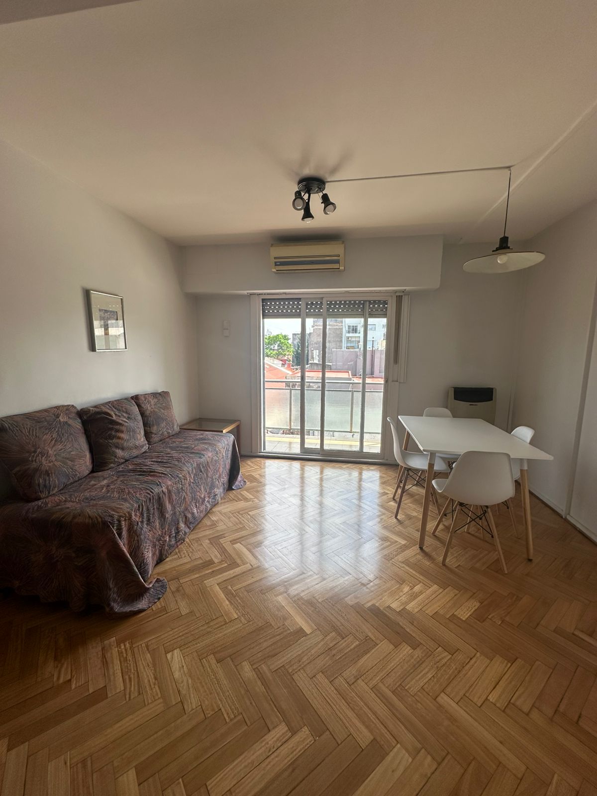 Amplia propiedad amueblada en alquiler. Cuenta con living comedor, cocina, 2 habitaciones, vestidor, baño completo y balcón corrido. El edificio cuenta con espacios de uso compartido. Con cercanía a diferentes universidades (UADE, UBA Sociales, UAI).