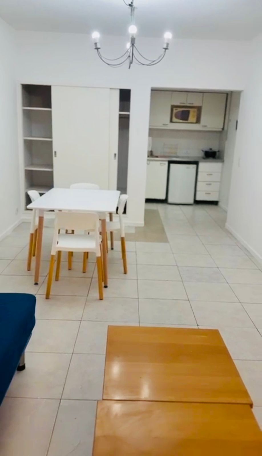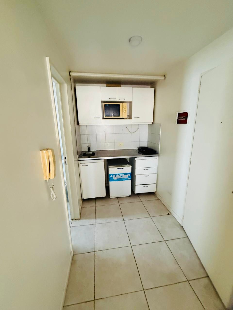 Amplio monoambiente amoblado y luminoso. Cuenta con kitchenette que incluye anafe eléctrico y microondas.